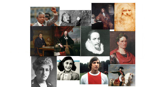 Dit zijn de studies van onze klas: Anne Frank=Sarah en Safae. Antoni van Leeuwenhoek=Julian en Midas. Eise Eisinga=Daan en Morris.Nelson Mandela= Kas en Sebas. Napoleon Bonaparte = Anders en Niclas, Michiel de Ruyter=Jasmijn en Noa. Alleta Jacobs =Nazli, Hanna en Tanya,Julius Caesar= Houdayfa.Albert Einstein= Sahar en Romaysae, Hugo de Groot Inez en Fien,Johan cruijff= Ramses,Wolf en Yassine.Leonardo da Vinci=Daniël.